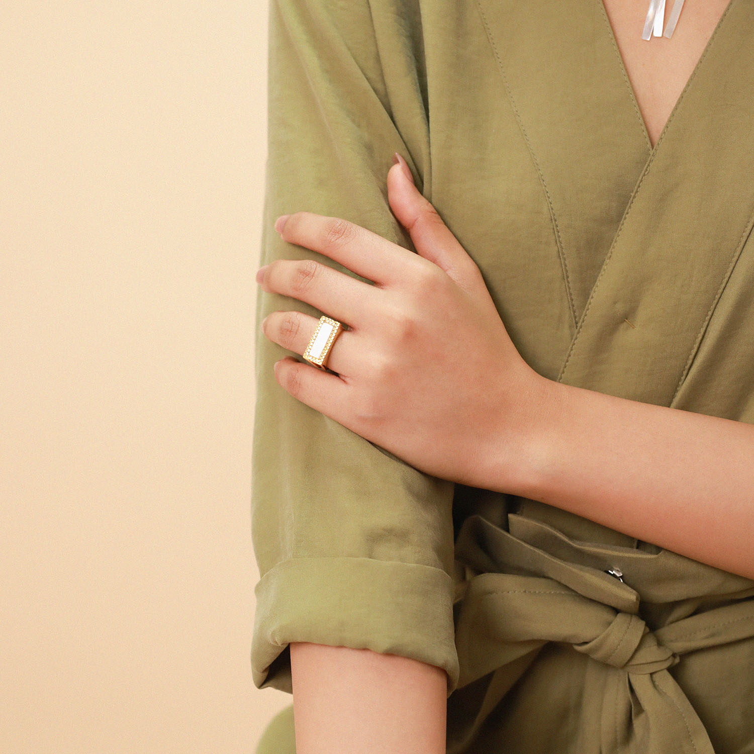 ფრანგული ბრენდი Nature Bijoux ს ხელნაკეთი ბეჭედი, კოლექციიდან BARCARES . სამკაულის ბაზად გამოყენებულია თითბერი, კოლექციაში გამოყენებული ნატურალური მასალები და ქვები: შავი სადაფი, ყავისფერი სადაფი, ოქროსფეერი სადაფი, თეთრი სადაფი.