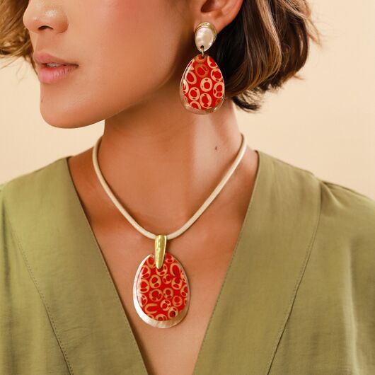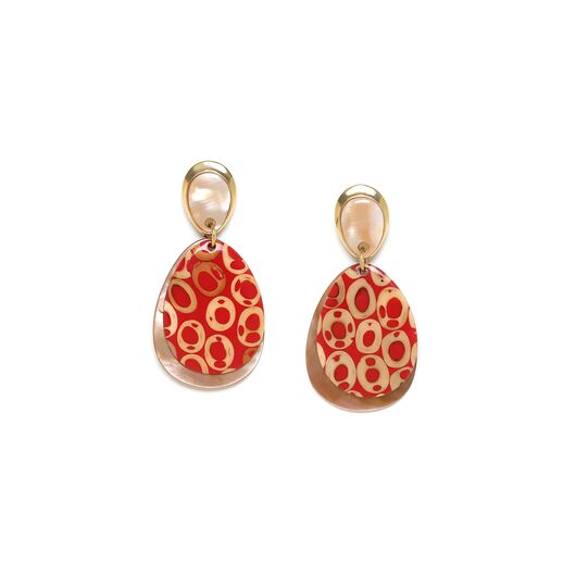 ფრანგული ბრენდი Nature Bijoux ს ხელნაკეთი საყურე, კოლექციიდან PICCADILLY. სამკაულის ბაზად გამოყენებულია თითბერი, კოლექციაში გამოყენებული ნატურალური მასალები და ქვები: პალმის მარცვლები, ყავისფერი სადაფი, თეთრი სადაფი