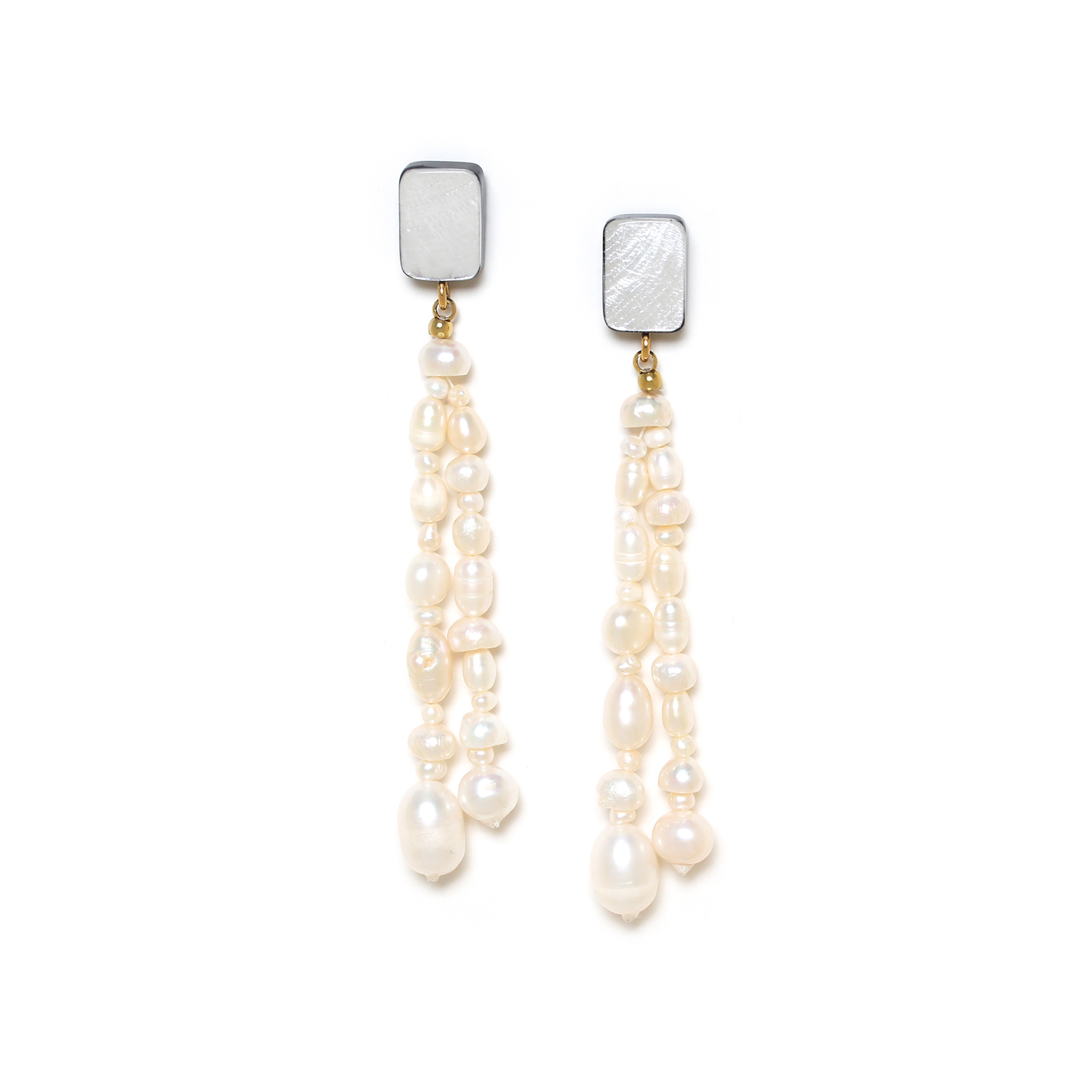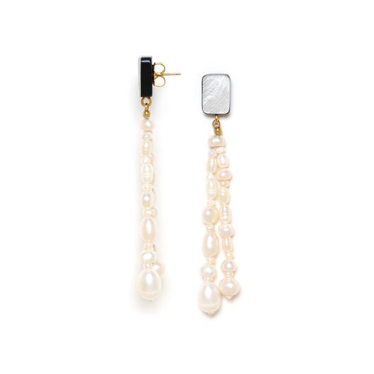 ფრანგული ბრენდი Nature Bijoux ს ხელნაკეთი საყურე, კოლექციიდან MOONLIGHT. სამკაულის ბაზად გამოყენებულია თითბერი, კოლექციაში გამოყენებული ნატურალური მასალები და ქვები: მარგალიტი, სადაფი,ტყავი.