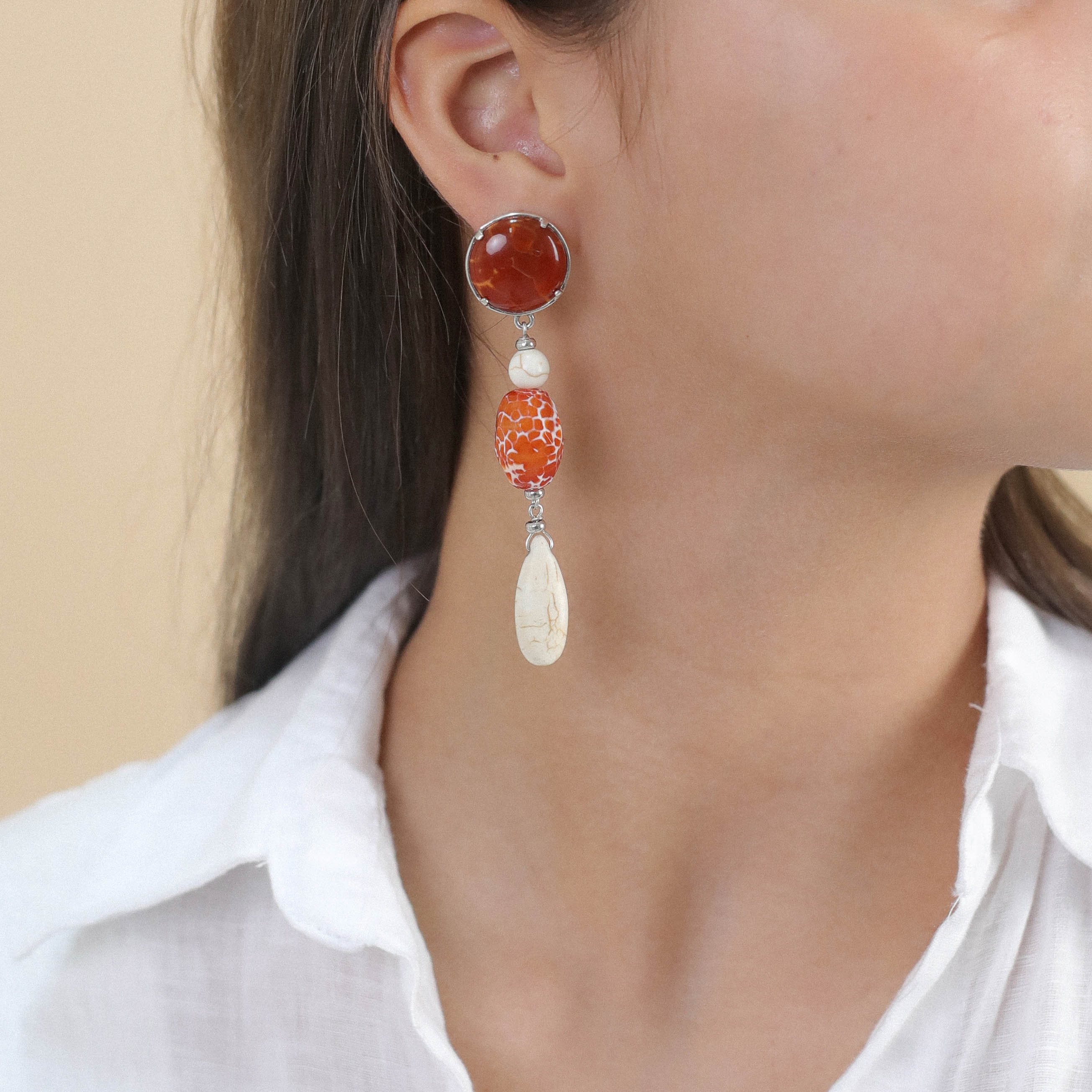 ფრანგული ბრენდი Nature Bijoux ს ხელნაკეთი საყურე, კოლექციიდან TERRA COTTA. სამკაულის ბაზად გამოყენებულია თითბერი, კოლექციაში გამოყენებული ნატურალური მასალები და ქვები: ცეცხლის აგატი, ჰაულიტი.