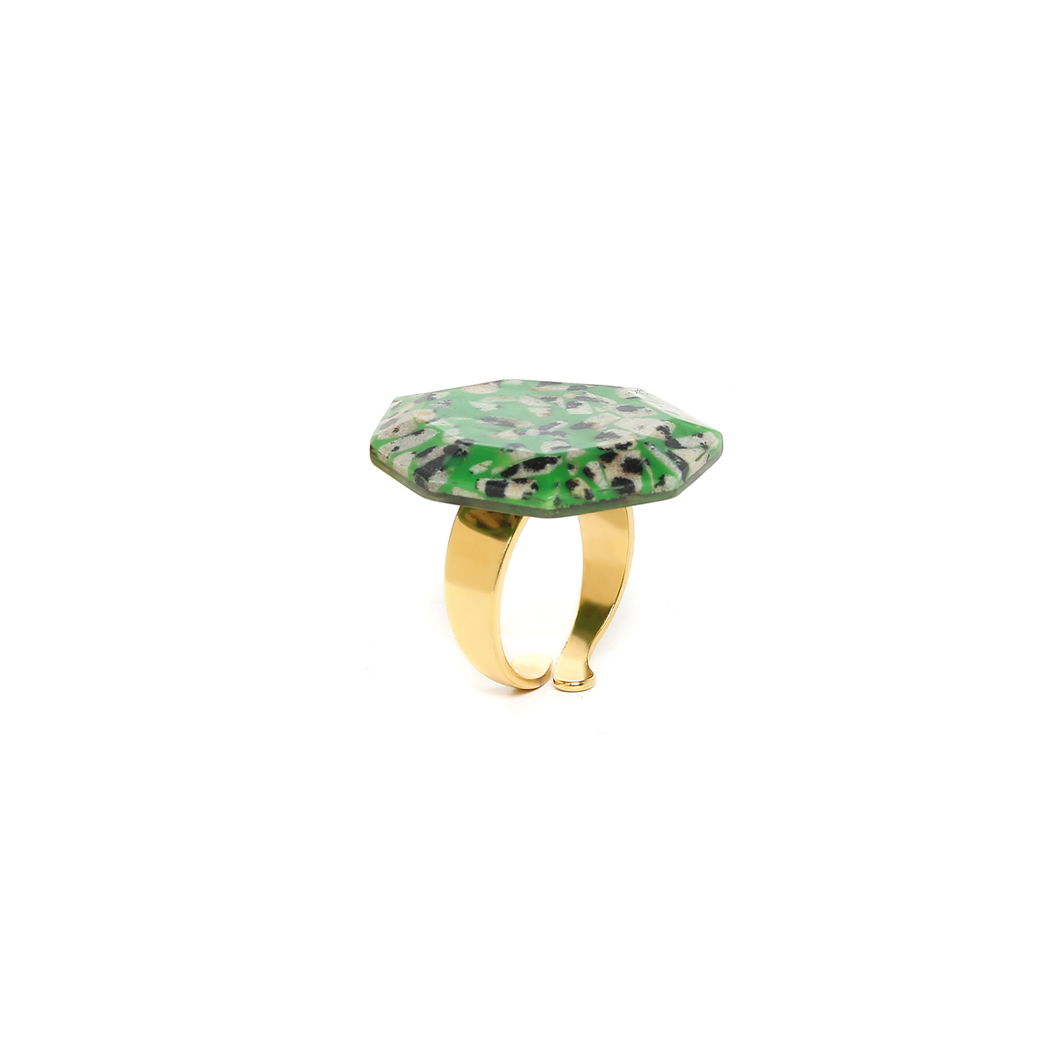 ფრანგული ბრენდი Nature Bijoux ს ხელნაკეთი ბეჭედი, კოლექციიდან PALAZZO. სამკაულის ბაზად გამოყენებულია თითბერი, კოლექციაში გამოყენებული ნატურალური მასალები და ქვები: ლაქებიანი იასპი, აგატი.
