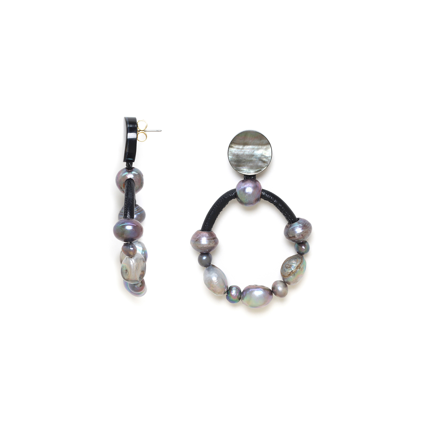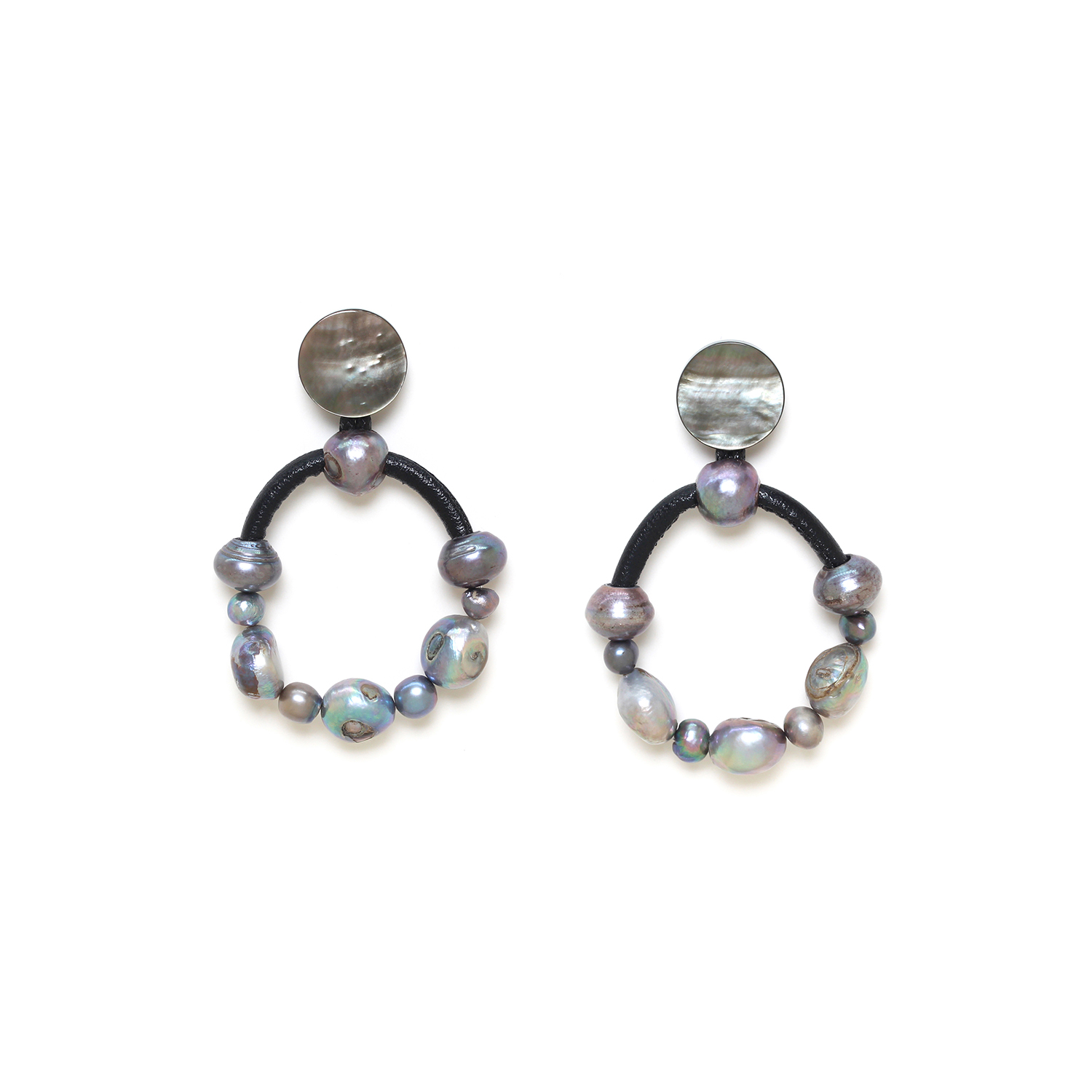ფრანგული ბრენდი Nature Bijoux ს ხელნაკეთი საყურე, კოლექციიდან BLUE PEARL. სამკაულის ბაზად გამოყენებულია თითბერი, კოლექციაში გამოყენებული ნატურალური მასალები და ქვები: სადაფი, რქა, ტყავი, მარგალიტი.