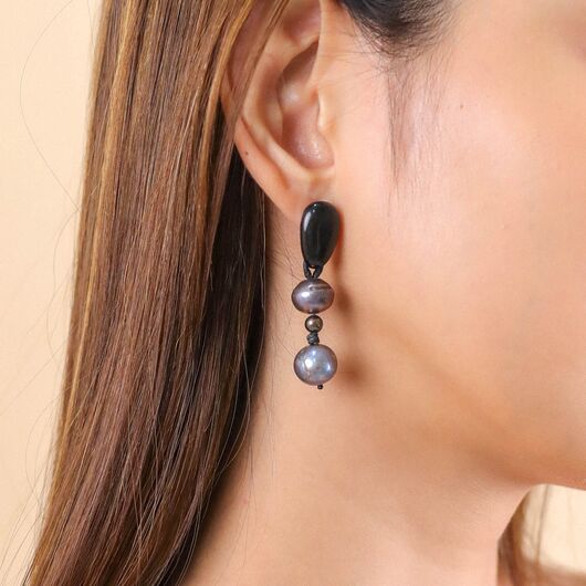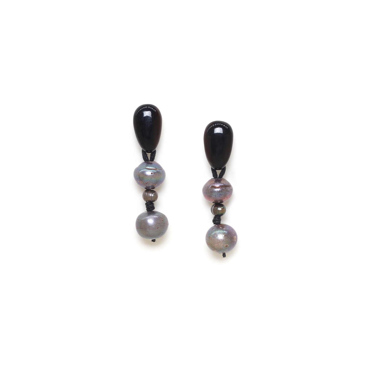 ფრანგული ბრენდი Nature Bijoux ს ხელნაკეთი საყურე, კოლექციიდან BLUE PEARL. სამკაულის ბაზად გამოყენებულია თითბერი, კოლექციაში გამოყენებული ნატურალური მასალები და ქვები: სადაფი, რქა, ტყავი, მარგალიტი.