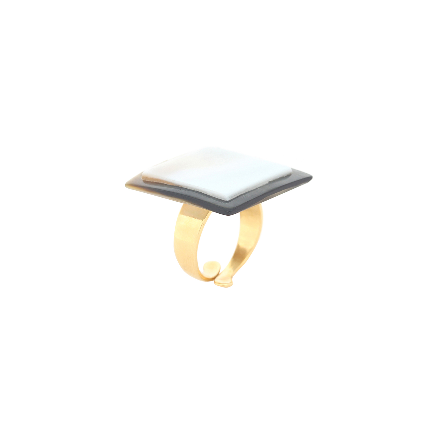 ფრანგული ბრენდი Nature Bijoux ს ხელნაკეთი ბეჭედი, კოლექციიდან CAPABLANCA. სამკაულის ბაზად გამოყენებულია თითბერი, კოლექციაში გამოყენებული ნატურალური მასალები და ქვები: სადაფი, ლაბრადორიტი,ვარდისფერი ნიჟარა.