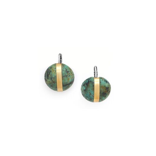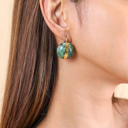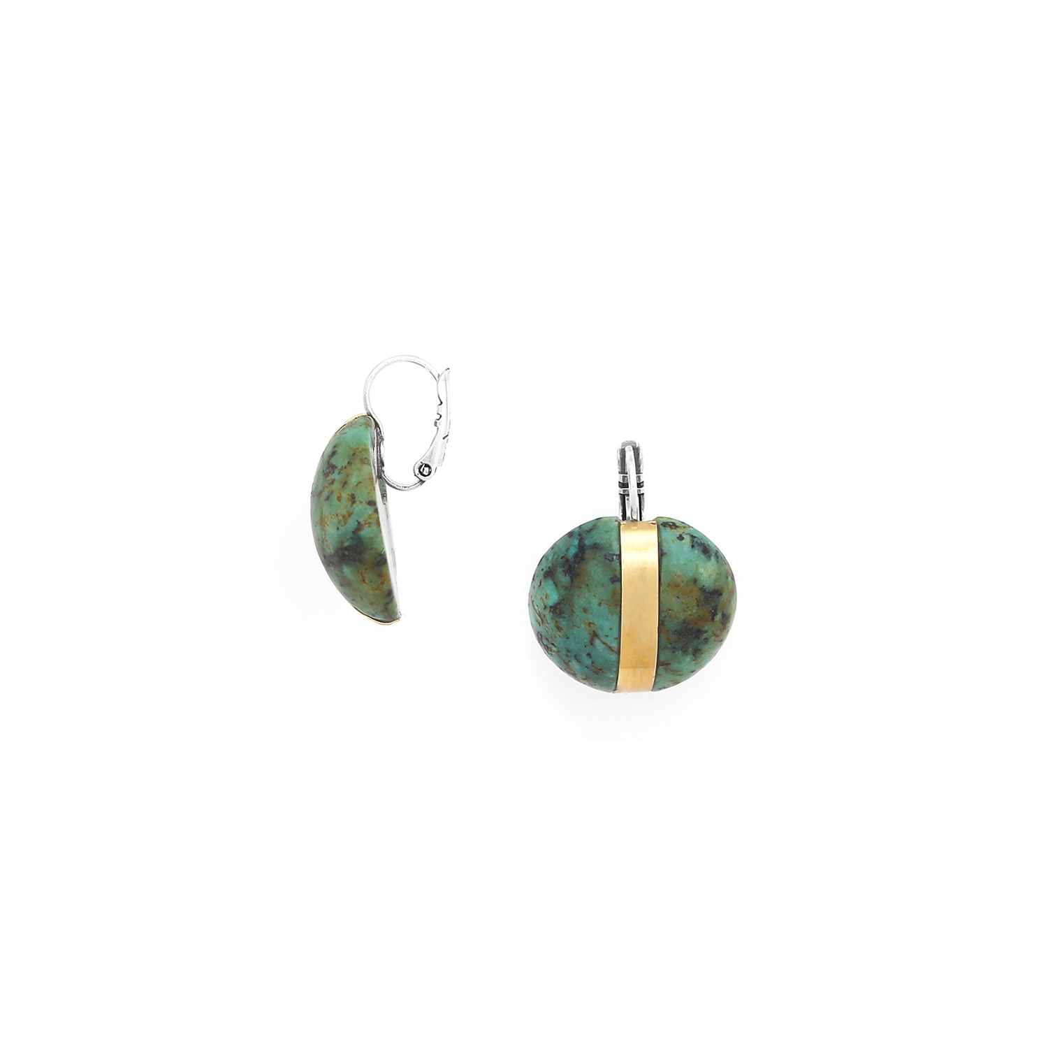 ფრანგული ბრენდი Nature Bijoux ს ხელნაკეთი საყურე, კოლექციიდან MARA. სამკაულის ბაზად გამოყენებულია თითბერი, კოლექციაში გამოყენებული ნატურალური მასალები და ქვები: აგატი, ავანტურინი,მარგალიტი, იასპი, აფრიკული ფირუზი.
