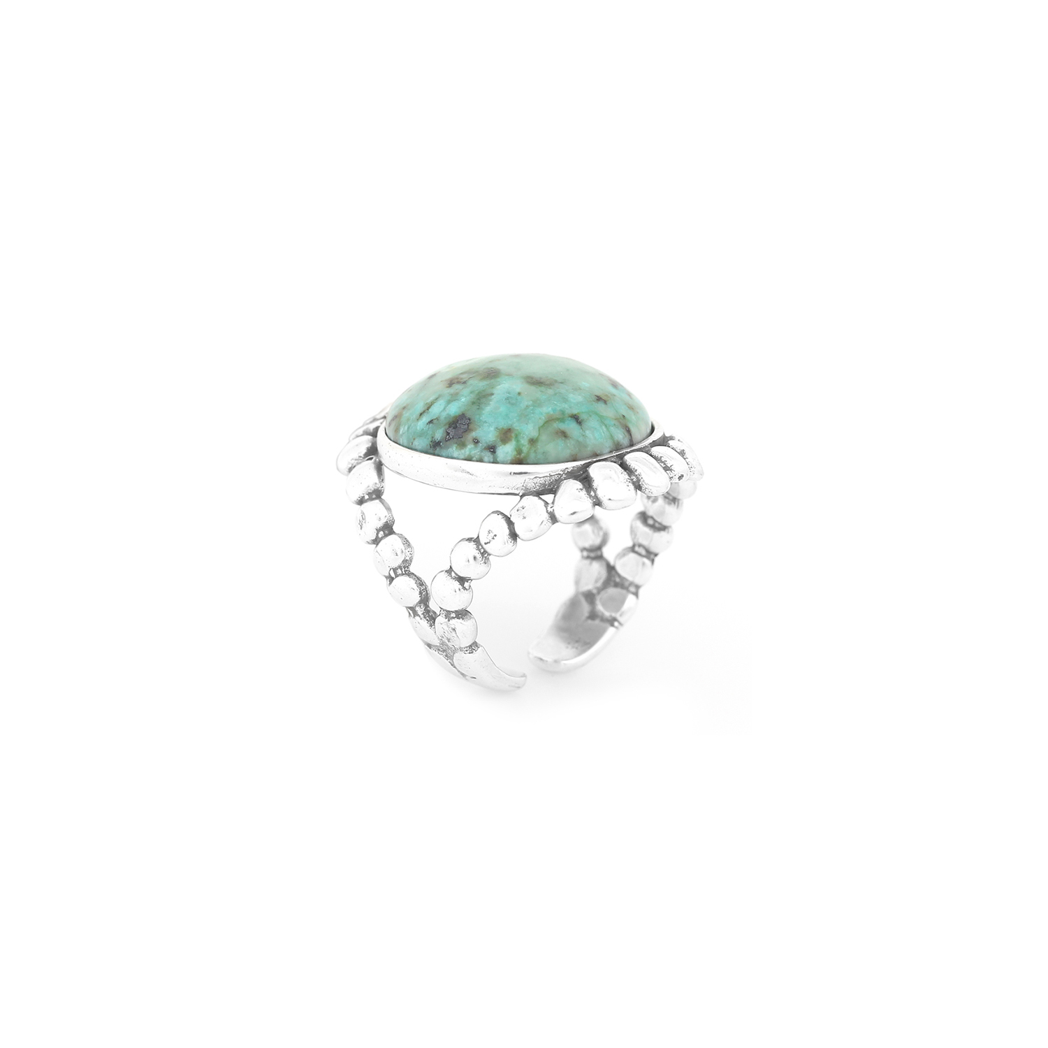 ფრანგული ბრენდი Nature Bijoux ს ხელნაკეთი ბეჭედი, კოლექციიდან MARA. სამკაულის ბაზად გამოყენებულია თითბერი, კოლექციაში გამოყენებული ნატურალური მასალები და ქვები: აგატი, ავანტურინი,მარგალიტი, იასპი, აფრიკული ფირუზი.