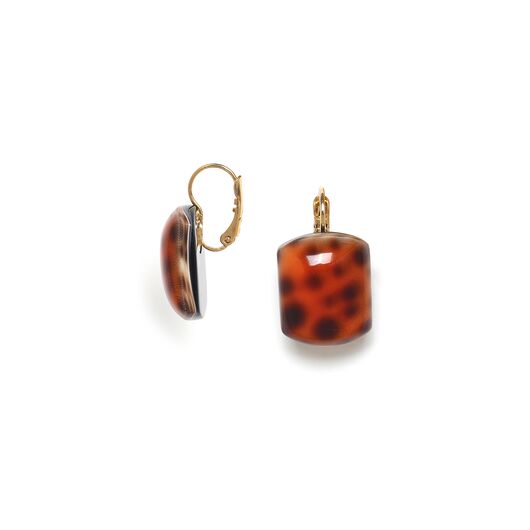 ფრანგული ბრენდი Nature Bijoux ს ხელნაკეთი საყურე, კოლექციიდან TIGRIS. სამკაულის ბაზად გამოყენებულია თითბერი, კოლექციაში გამოყენებული ნატურალური მასალები და ქვები: აგატი, რქა, დამუშავებული ბამბის ძაფი, მოლუსკის ნიჟარა.