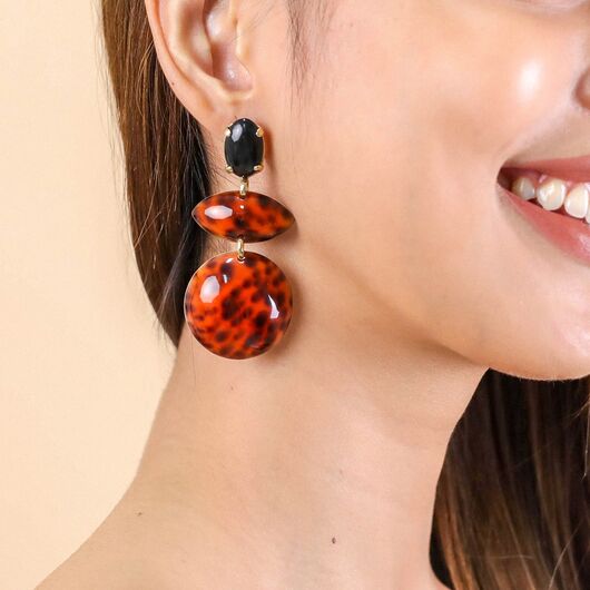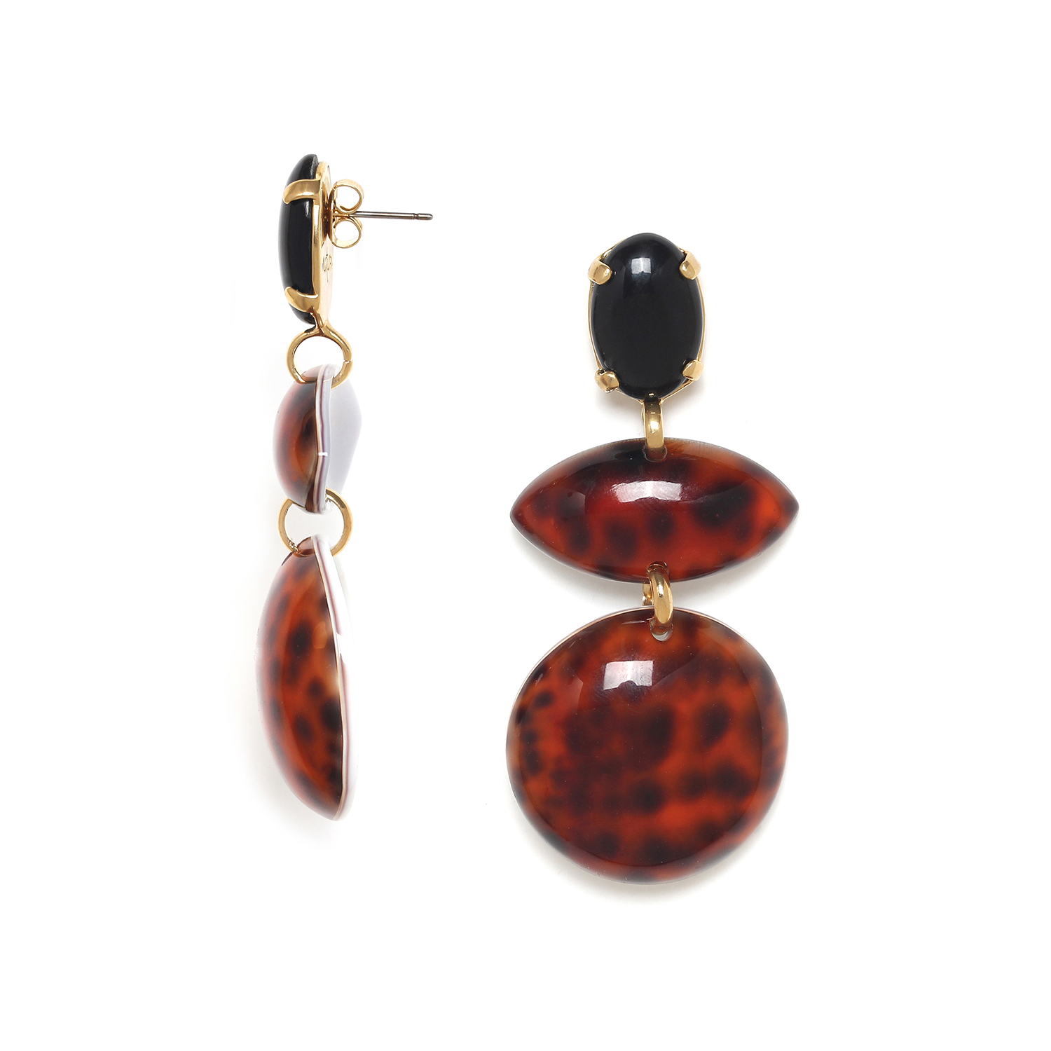 ფრანგული ბრენდი Nature Bijoux ს ხელნაკეთი საყურე, კოლექციიდან TIGRIS. სამკაულის ბაზად გამოყენებულია თითბერი, კოლექციაში გამოყენებული ნატურალური მასალები და ქვები: აგატი, რქა, დამუშავებული ბამბის ძაფი, მოლუსკის ნიჟარა.