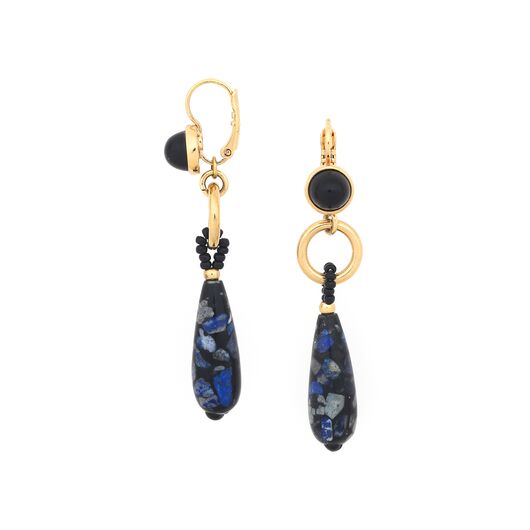 ფრანგული ბრენდი Nature Bijoux ს ხელნაკეთი საყურე, კოლექციიდან VENEZIA. სამკაულის ბაზად გამოყენებულია თითბერი, კოლექციაში გამოყენებული ნატურალური მასალები და ქვები: აგატი, ქოქოსის ხე, ლაზურიტი, ტყავი, ლაქებიანი იასპი.