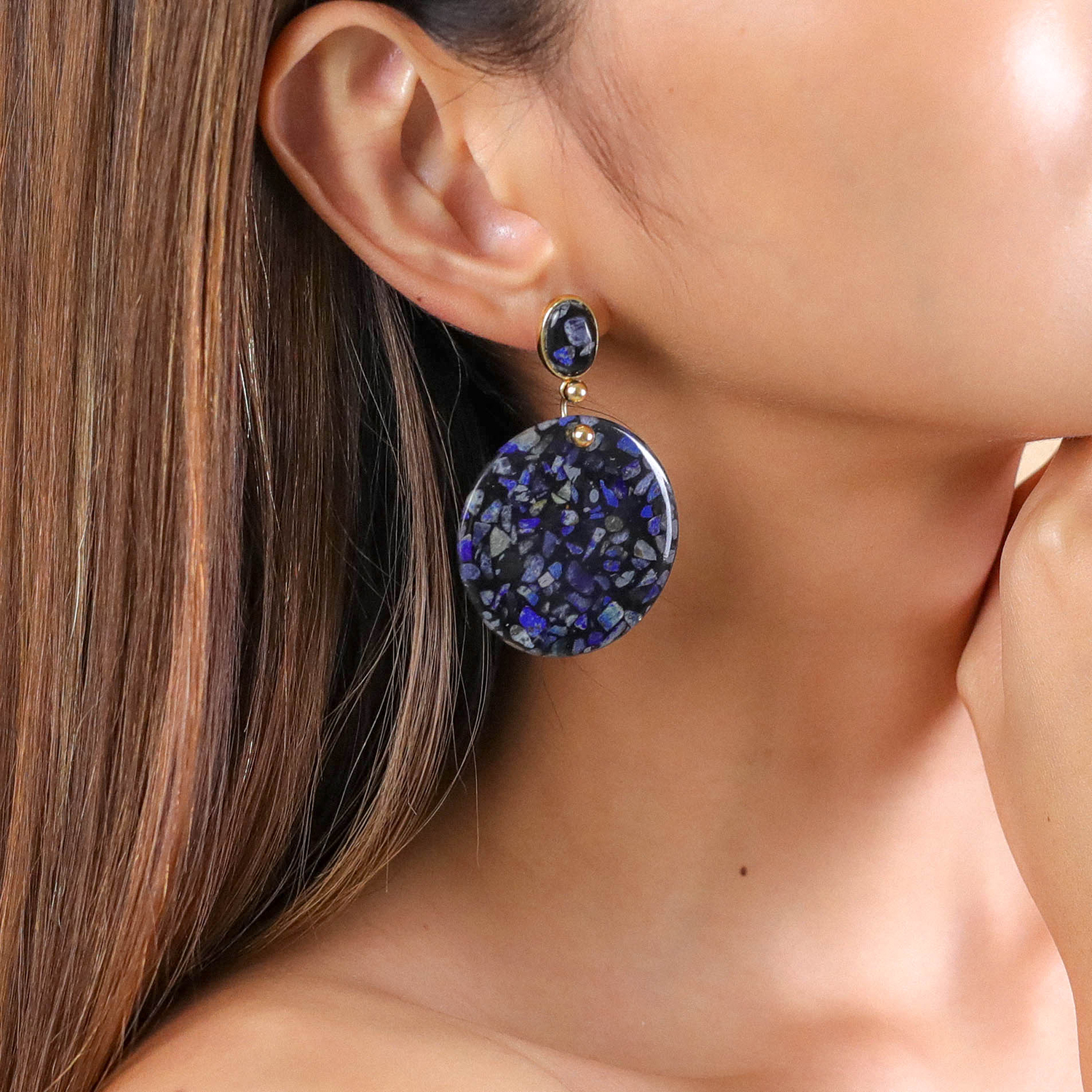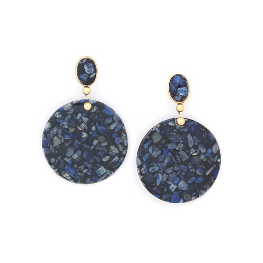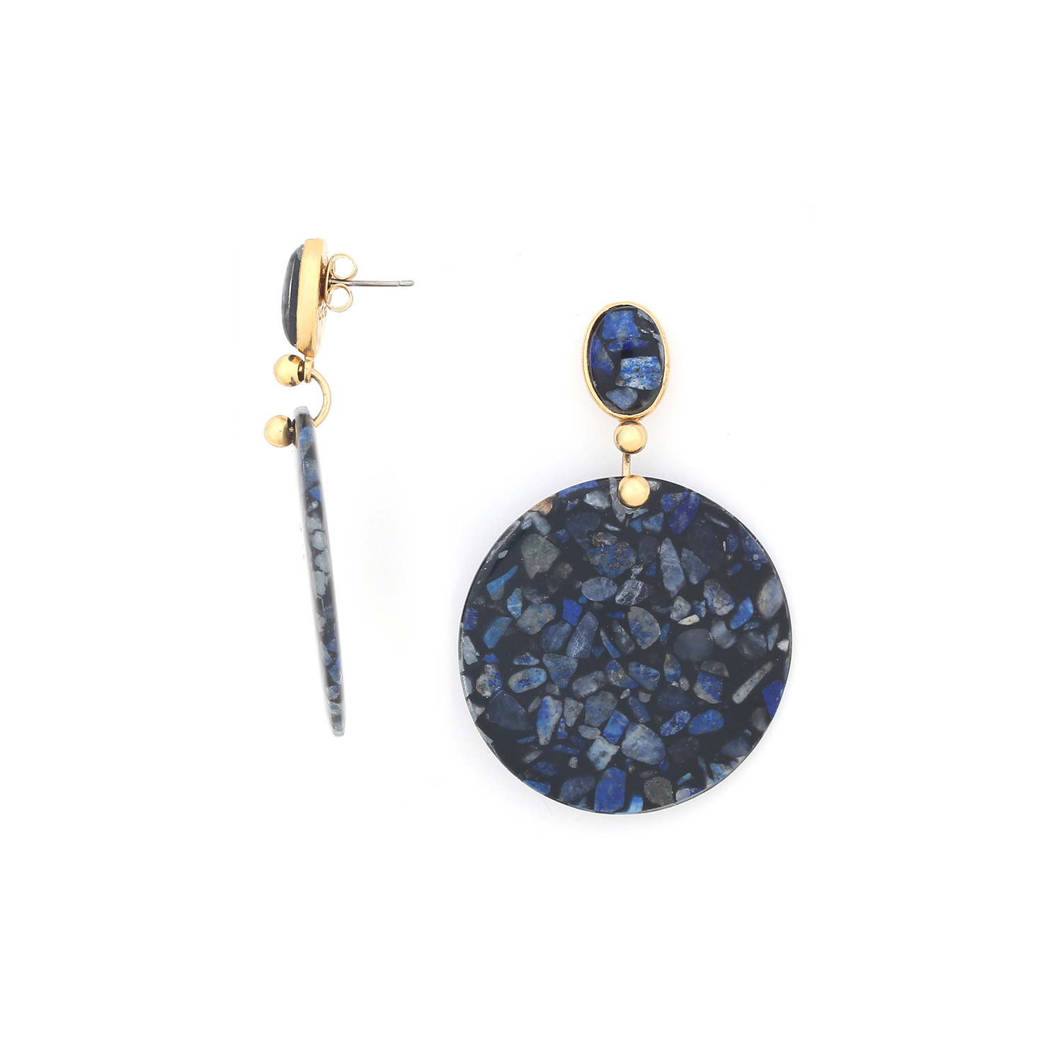 ფრანგული ბრენდი Nature Bijoux ს ხელნაკეთი საყურე, კოლექციიდან VENEZIA. სამკაულის ბაზად გამოყენებულია თითბერი, კოლექციაში გამოყენებული ნატურალური მასალები და ქვები: აგატი, ქოქოსის ხე, ლაზურიტი, ტყავი, ლაქებიანი იასპი.
