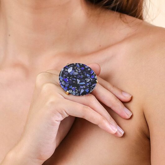 ფრანგული ბრენდი Nature Bijoux ს ხელნაკეთი ბეჭედი, კოლექციიდან VENEZIA. სამკაულის ბაზად გამოყენებულია თითბერი, კოლექციაში გამოყენებული ნატურალური მასალები და ქვები: აგატი, ქოქოსის ხე, ლაზურიტი, ტყავი, ლაქებიანი იასპი.