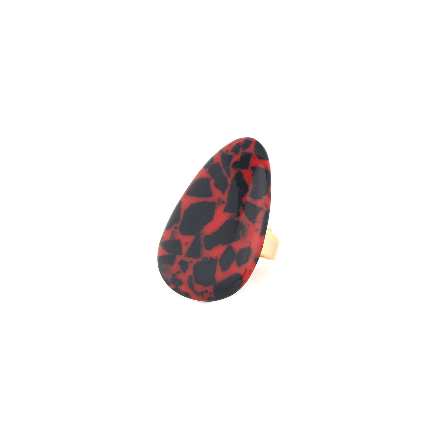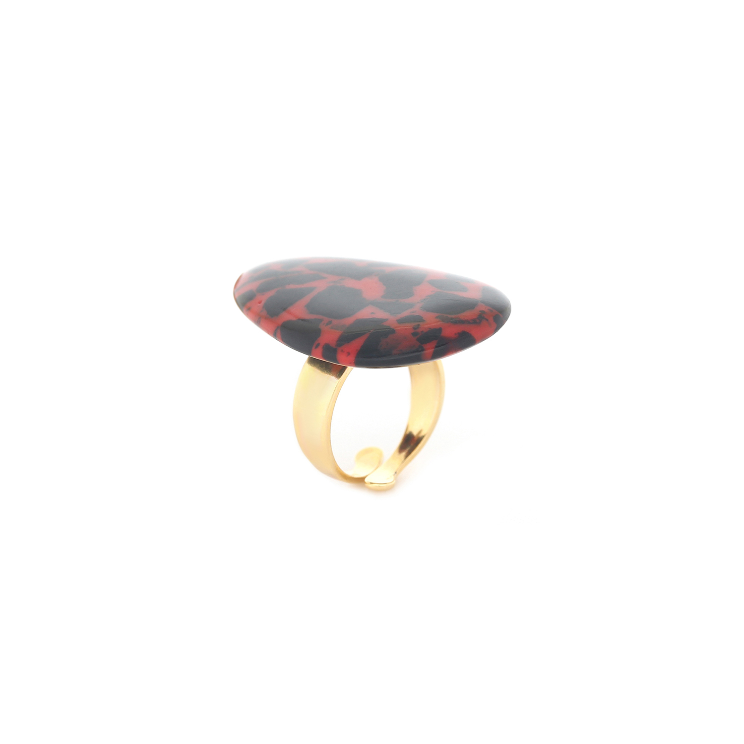 ფრანგული ბრენდი Nature Bijoux ს ხელნაკეთი ბეჭედი, კოლექციიდან VESUVIO. სამკაულის ბაზად გამოყენებულია თითბერი, კოლექციაში გამოყენებული ნატურალური მასალები და ქვები: სადაფი, ტყავი, დუმორტერიტი,რქა, დამუშავებული ბამბის ძაფი, ფისში დამუშავებული ნახშირი.
