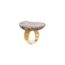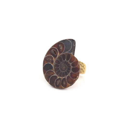 ფრანგული ბრენდი Nature Bijoux ს ხელნაკეთი ბეჭედი, კოლექციიდან WABI. სამკაულის ბაზად გამოყენებულია თითბერი, კოლექციაში გამოყენებული ნატურალური მასალები და ქვები: ციტრინი, მცენარის ბოჭკო, ამონიტი, ბოდის თესლი, სადაფი, ნაცრისფერი აბანოზის ხე.
