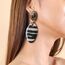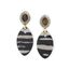ფრანგული ბრენდი Nature Bijoux ს ხელნაკეთი საყურე, კოლექციიდან ZEBRA. სამკაულის ბაზად გამოყენებულია თითბერი, კოლექციაში გამოყენებული ნატურალური მასალები და ქვები: რქა, ფისში დამუშავებული ქვიშა, სადაფი, ვეფხვის თვალი.