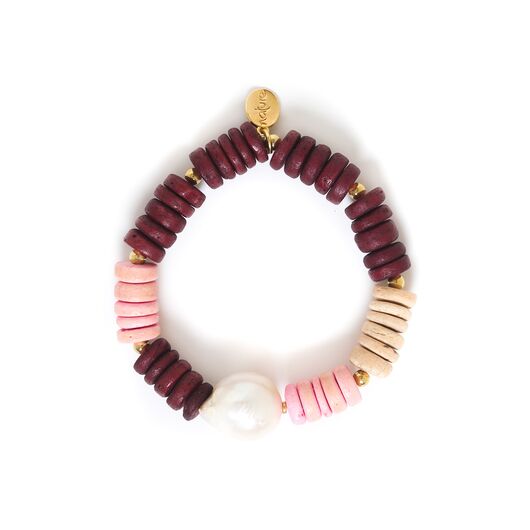 ფრანგული ბრენდი Nature Bijoux ს ხელნაკეთი სამაჯური, კოლექციიდან ACAPULCO. სამკაულის ბაზად გამოყენებულია თითბერი, კოლექციაში გამოყენებული ნატურალური მასალები და ქვები: ქოქოსის ხე, ლაზურიტი, ამეთვისტო.