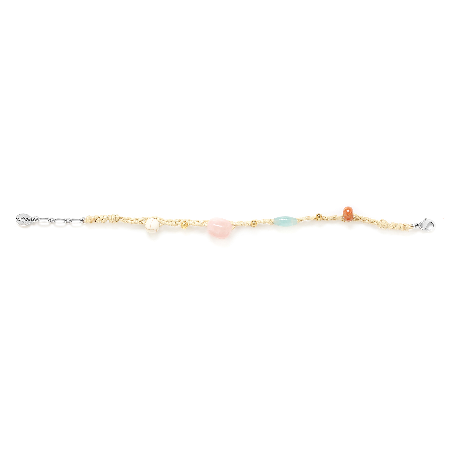 ფრანგული ბრენდი Nature Bijoux ს ხელნაკეთი სამაჯური, კოლექციიდან PETIT POUCET. სამკაულის ბაზად გამოყენებულია თითბერი, კოლექციაში გამოყენებული ნატურალური მასალები და ქვები: ცისფერი ქალცედონი, სპილენძი, ბამბის ძაფი, დალმატური იასპი, ლაბრადორიტი, ყვითელი იასპი.