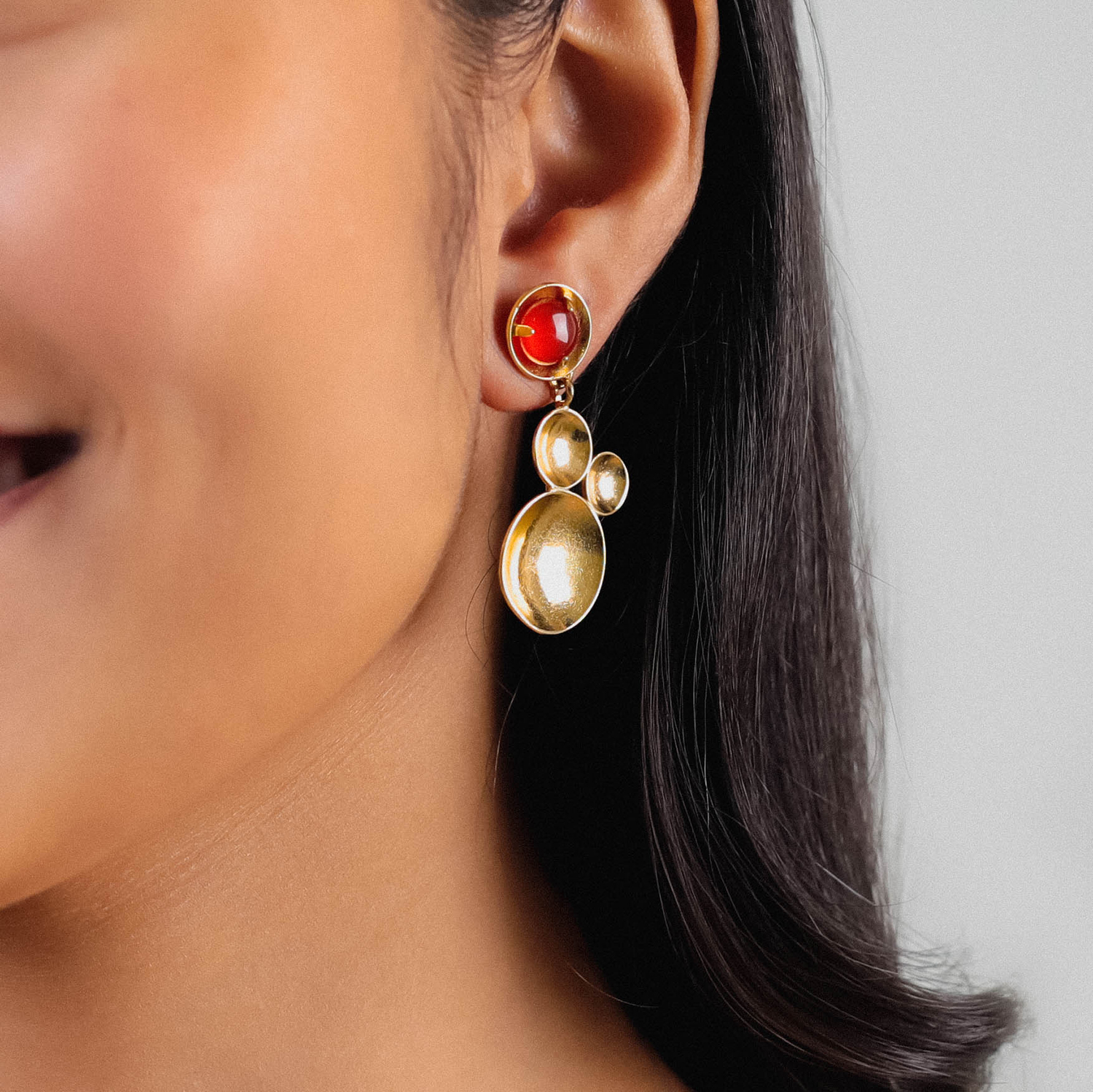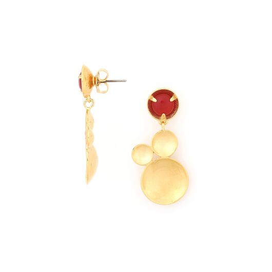 ფრანგული ბრენდი Ori Taos ს ხელნაკეთი საყურე, კოლექციიდან JIMILI. სამკაულის ბაზად გამოყენებულია თითბერი, კოლექციაში გამოყენებული ნატურალური მასალები და ქვები: აქატი, ლაპის ლაზული, თითბერი