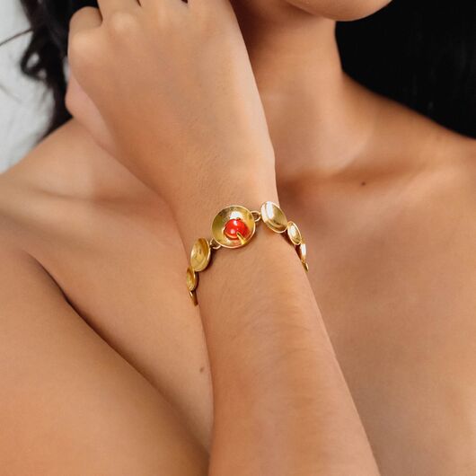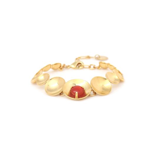 ფრანგული ბრენდი Ori Taos ს ხელნაკეთი სამაჯური, კოლექციიდან JIMILI. სამკაულის ბაზად გამოყენებულია თითბერი, კოლექციაში გამოყენებული ნატურალური მასალები და ქვები: აქატი, ლაპის ლაზული, თითბერი