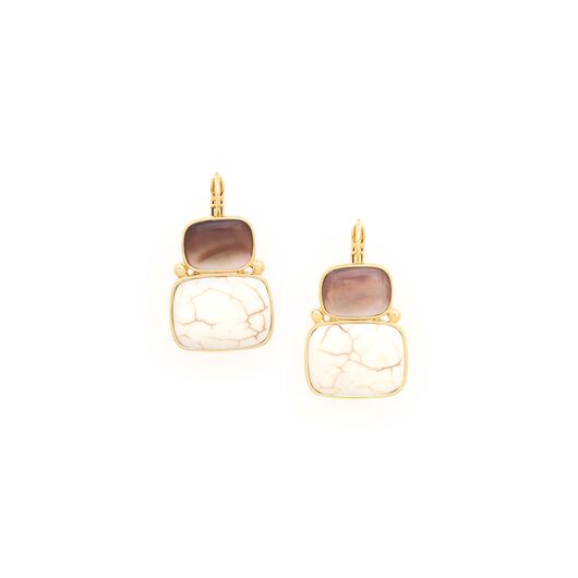 ფრანგული ბრენდი Nature Bijoux ს ხელნაკეთი საყურე, კოლექციიდან ALHAMBRA. სამკაულის ბაზად გამოყენებულია თითბერი, კოლექციაში გამოყენებული ნატურალური მასალები და ქვები: ყავისფერი სადაფი,ბამბის ძაფი, ჰუალტი, ჯეკფრუტის ხე , იასპი, თითბერი.