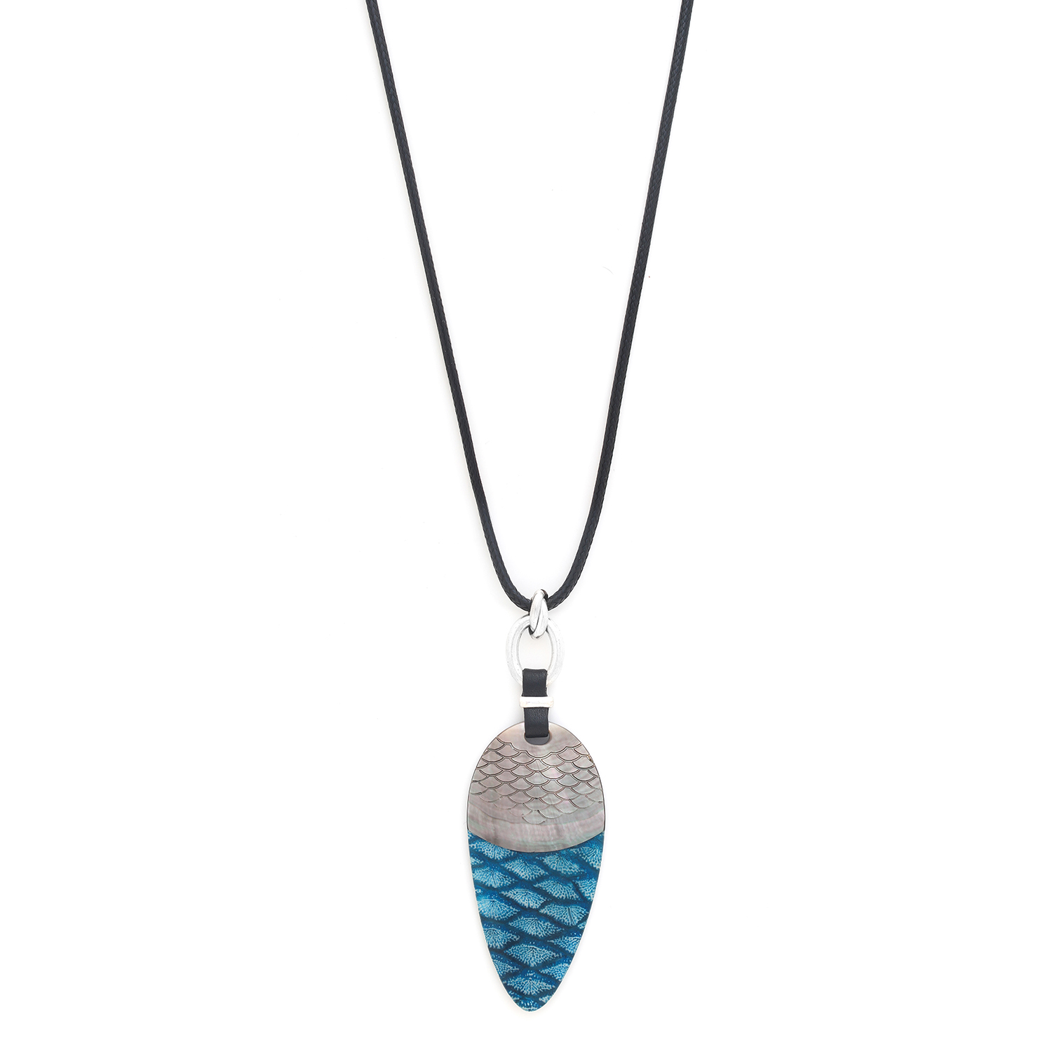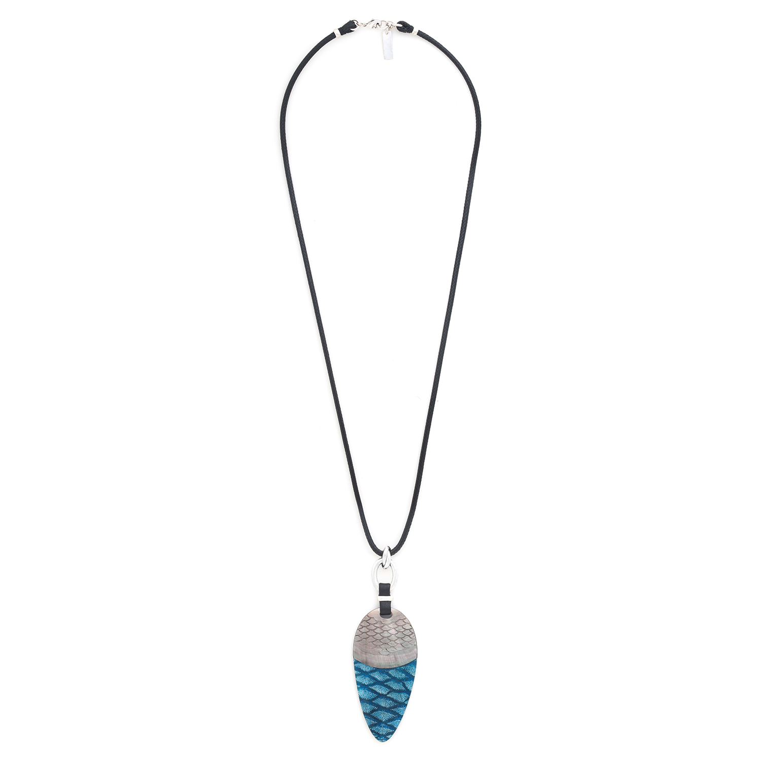 ფრანგული ბრენდი Nature Bijoux ს ხელნაკეთი ყელსაბამი, კოლექციიდან CORFOU. სამკაულის ბაზად გამოყენებულია თითბერი, კოლექციაში გამოყენებული ნატურალური მასალები და ქვები: ფალავანის დედა მარგალიტი,ბამბის ძაფი, რქა, თევზის ტყავი, თითბერი.