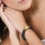 ფრანგული ბრენდი Nature Bijoux ს ხელნაკეთი სამაჯური, კოლექციიდან SALAMANDRA. სამკაულის ბაზად გამოყენებულია თითბერი, კოლექციაში გამოყენებული ნატურალური მასალები და ქვები: ქოქოსის ხე, რქა, ოქროსფერი სადაფი.