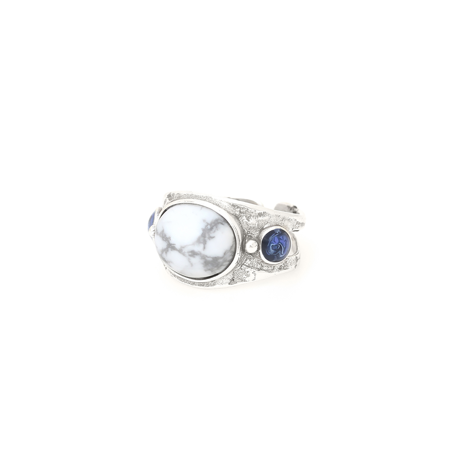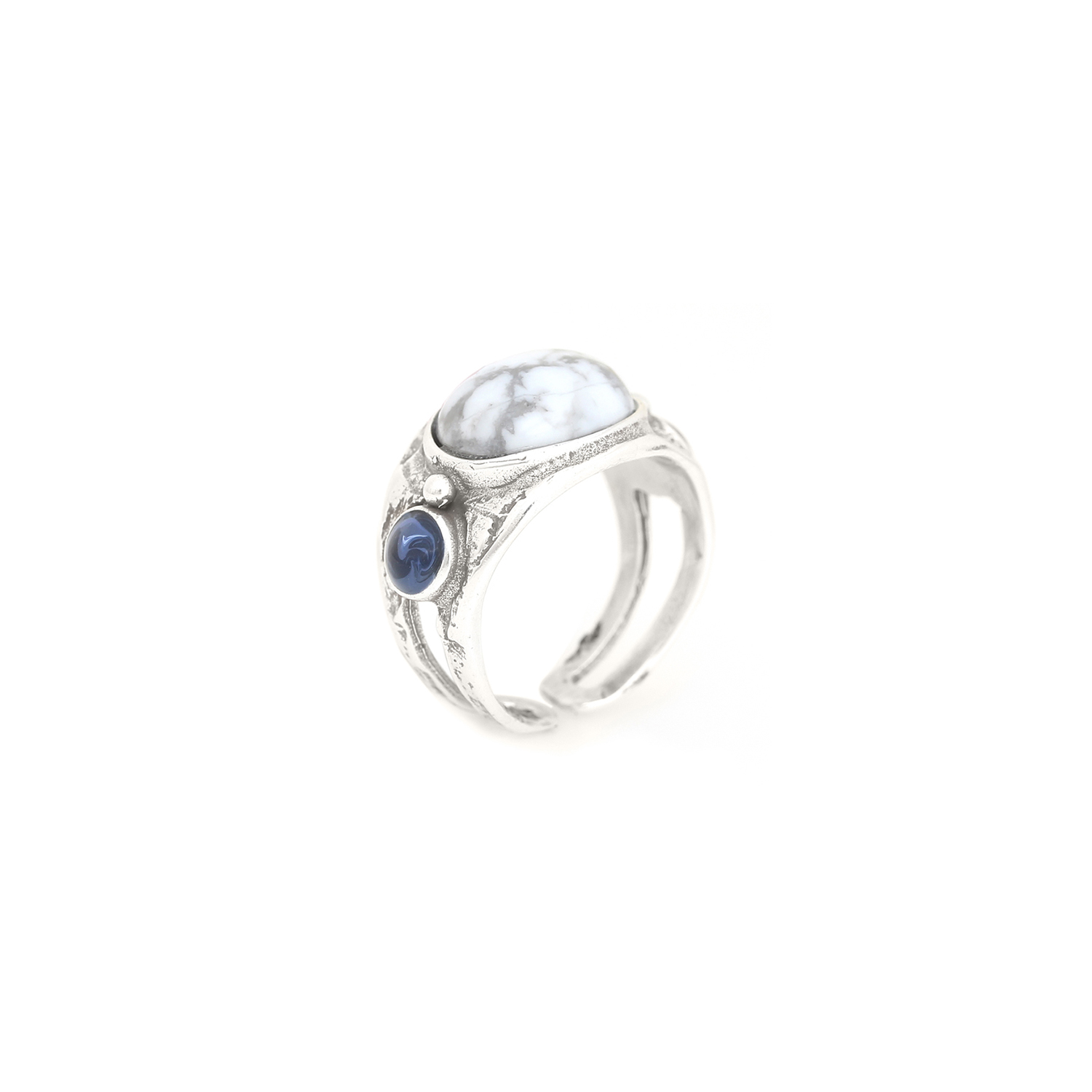 ფრანგული ბრენდი Nature Bijoux ს ხელნაკეთი ბეჭედი, კოლექციიდან ARCTIQUE. სამკაულის ბაზად გამოყენებულია თითბერი, კოლექციაში გამოყენებული ნატურალური მასალები და ქვები: აქვამარინი, ჰაულიტი, სოდალიტი, თითბერი, კალის შენადნობი.