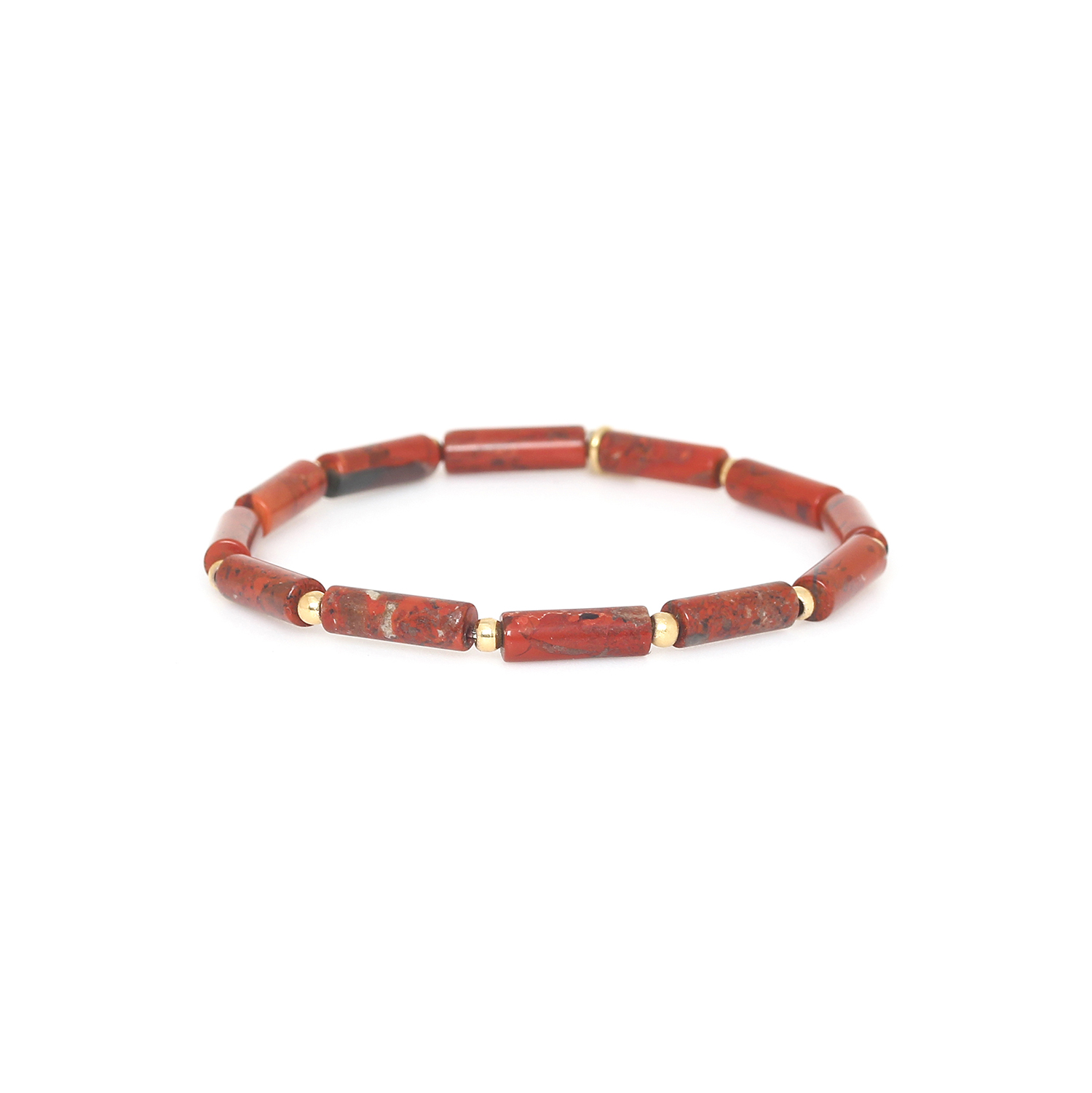 ფრანგული ბრენდი Nature Bijoux ს ხელნაკეთი სამაჯური, კოლექციიდან MILANO. სამკაულის ბაზად გამოყენებულია თითბერი, კოლექციაში გამოყენებული ნატურალური მასალები და ქვები: ყავისფერი მარგალიტი, დამუშავებული ბამბის ძაფი,წითელი იასპი, ვარდიფერი ნიჟარა, ქვიშა, თითბერი, კალის შენადნობი.