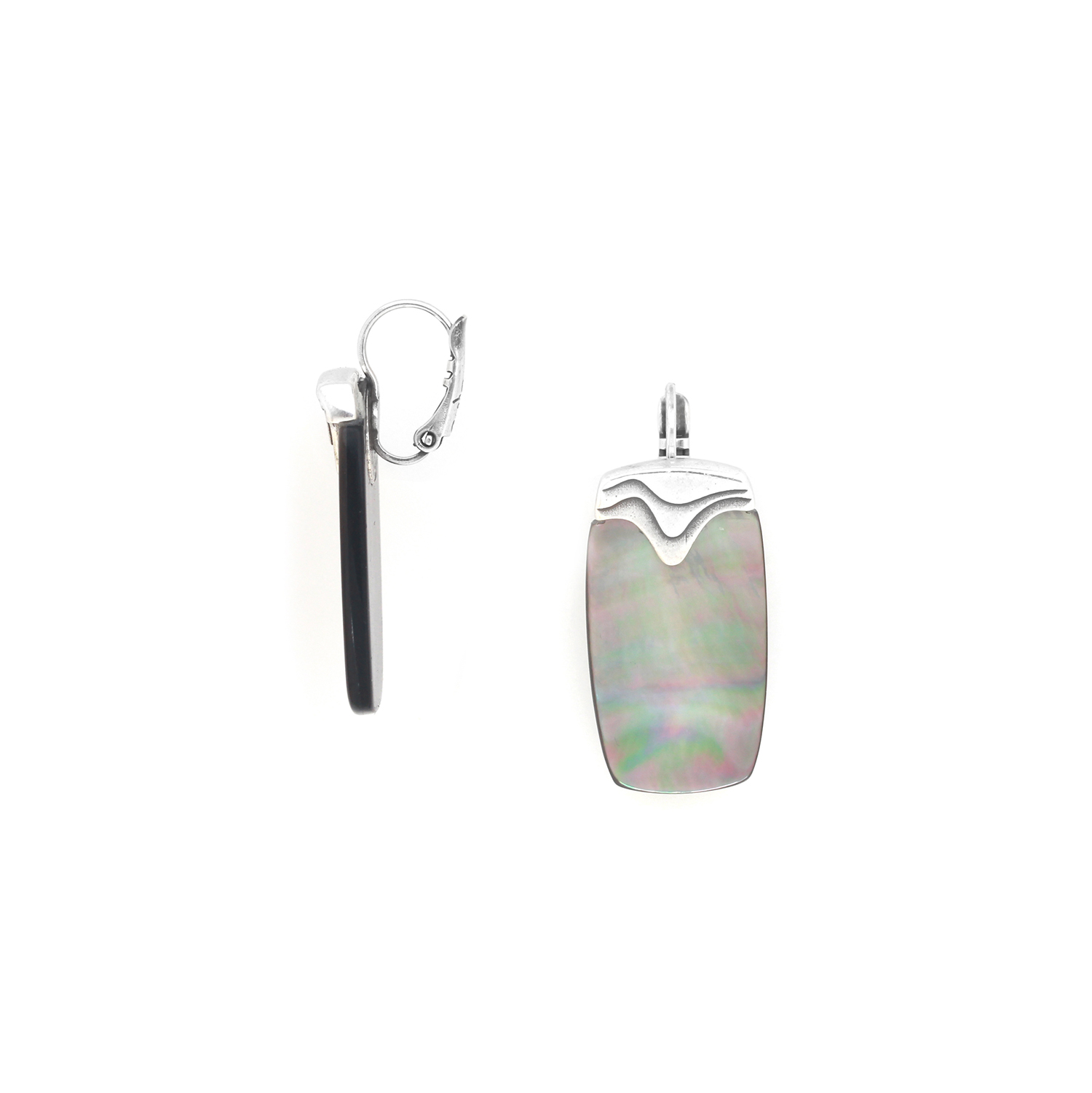 ფრანგული ბრენდი Nature Bijoux ს ხელნაკეთი საყურე, კოლექციიდან MINDORO. სამკაულის ბაზად გამოყენებულია თითბერი, კოლექციაში გამოყენებული ნატურალური მასალები და ქვები: ფალავნის მარგალიტი, თითბერი.