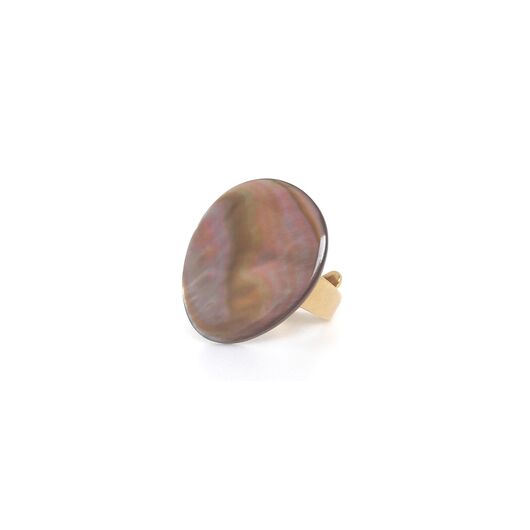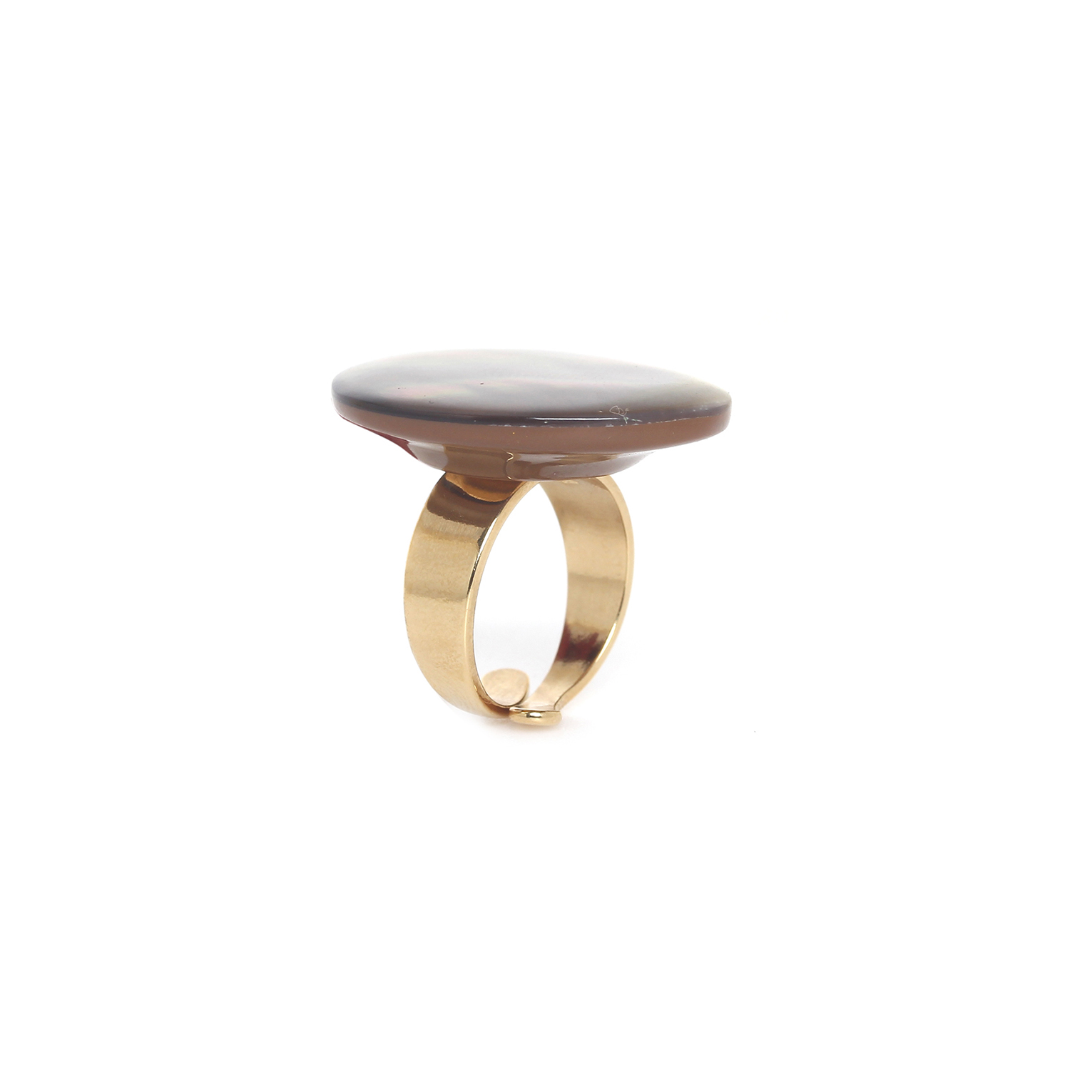 ფრანგული ბრენდი Nature Bijoux ს ხელნაკეთი ბეჭედი, კოლექციიდან TIVOLI. სამკაულის ბაზად გამოყენებულია თითბერი, კოლექციაში გამოყენებული ნატურალური მასალები და ქვები: ყავისფერი სადაფი, მარგალიტი, ჰუალიტი, ნეფრიტი, იასპი, ყავისფერი იასპი, ვეფხვის თვალი, თითბერი.