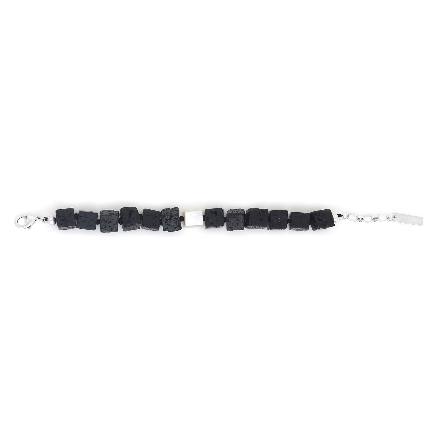 ფრანგული ბრენდი Nature Bijoux ს ხელნაკეთი სამაჯური, კოლექციიდან VOLCAN. სამკაულის ბაზად გამოყენებულია თითბერი, კოლექციაში გამოყენებული ნატურალური მასალები და ქვები: რქა, ლავის ქვა, თეთრი სადაფი.
