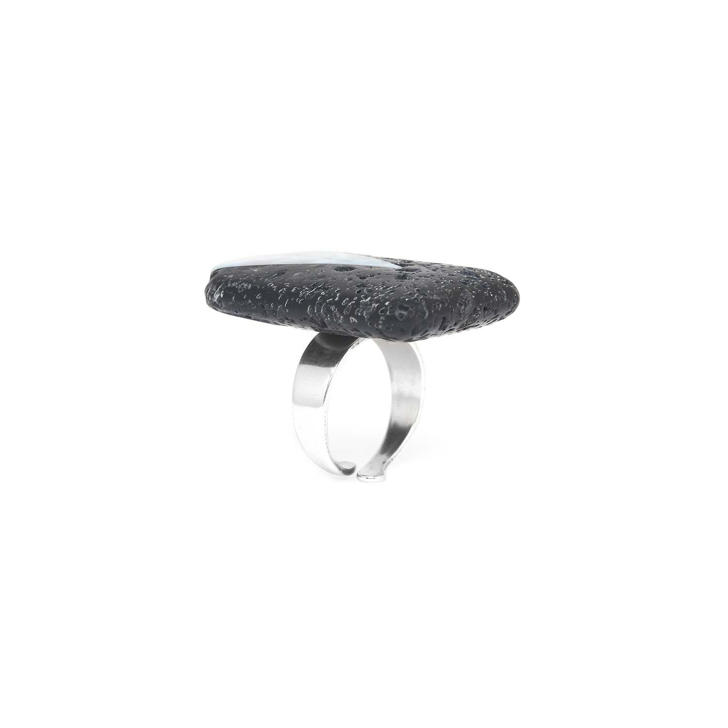 ფრანგული ბრენდი Nature Bijoux ს ხელნაკეთი ბეჭედი, კოლექციიდან VOLCAN. სამკაულის ბაზად გამოყენებულია თითბერი, კოლექციაში გამოყენებული ნატურალური მასალები და ქვები: რქა, ლავის ქვა, თეთრი სადაფი.
