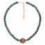 ფრანგული ბრენდი Nature Bijoux ს ხელნაკეთი ყელსაბამი, კოლექციიდან AVENTURINE. სამკაულის ბაზად გამოყენებულია თითბერი, კოლექციაში გამოყენებული ნატურალური მასალები და ქვები: კალიფორნიული თეთრი მუხა, მწვანე ავანტიურინი.