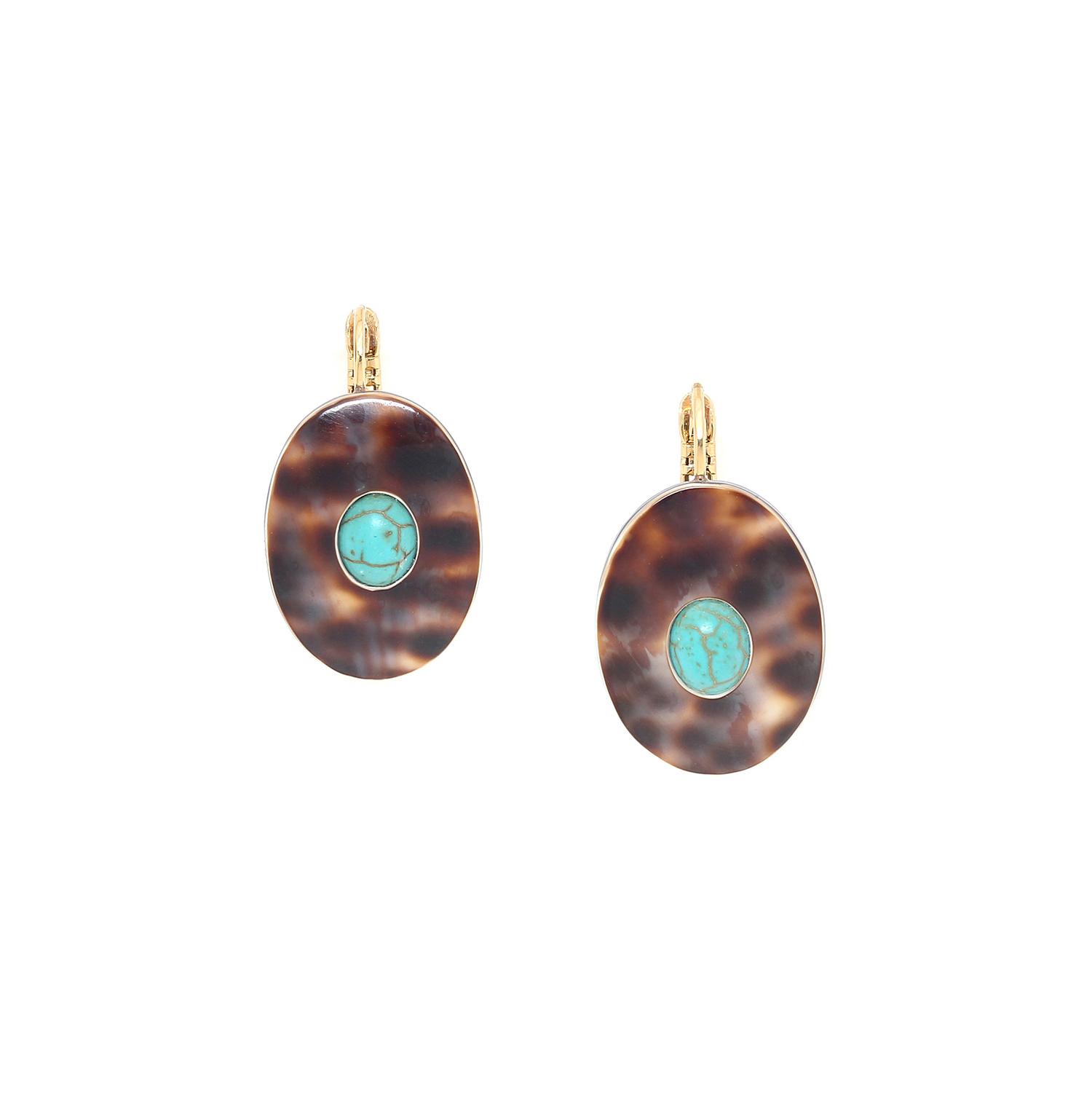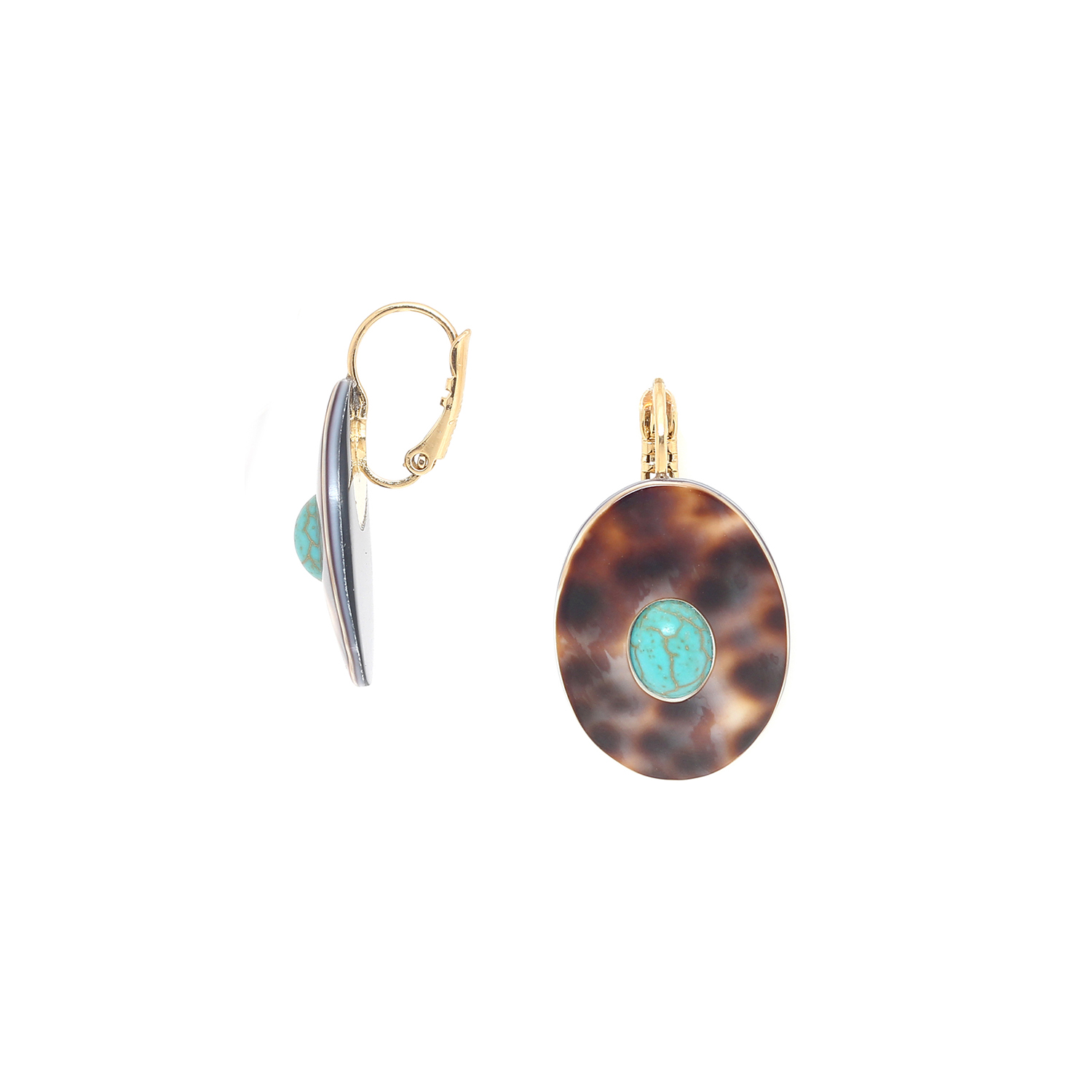 ფრანგული ბრენდი Nature Bijoux ს ხელნაკეთი საყურე, კოლექციიდან SURABAYA. სამკაულის ბაზად გამოყენებულია თითბერი, კოლექციაში გამოყენებული ნატურალური მასალები და ქვები: წითელი აგატი, ჰუალიტი, ზღვის ლოკოკინა, თითბერი.