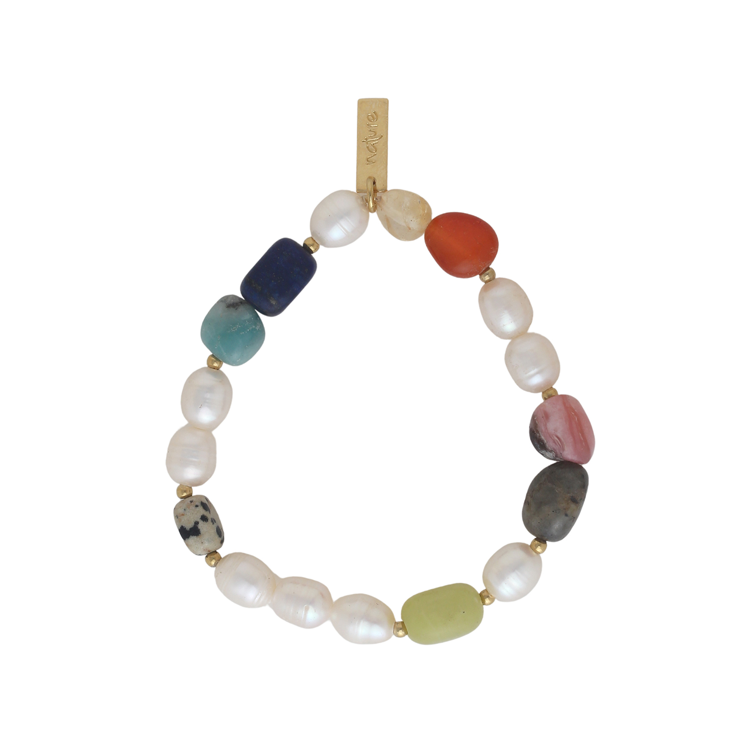 ფრანგული ბრენდი Nature Bijoux ს ხელნაკეთი სამაჯური, კოლექციიდან PALAWAN. სამკაულის ბაზად გამოყენებულია თითბერი, კოლექციაში გამოყენებული ნატურალური მასალები და ქვები: ყავისფერი სადაფი, მინის ბურთულები, წითელი იასპი, მუხის ხე, ხავსისებრი იასპი, იასპი