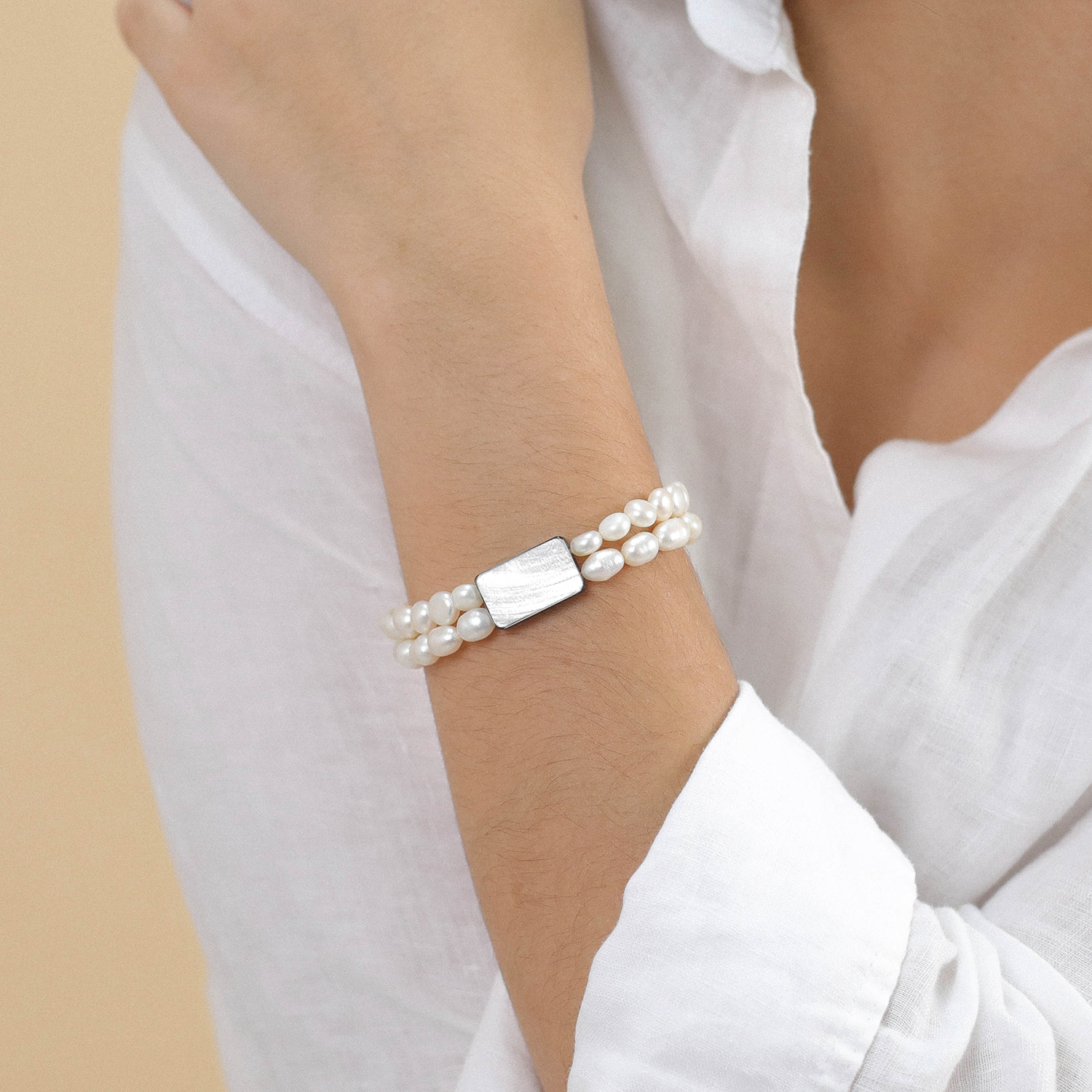 ფრანგული ბრენდი Nature Bijoux-ს ხელნაკეთი სამაჯური კოლექციიდან MOONLIGHT. სამკაულის ბაზად გამოყენებულია თითბერი. კოლექციაში გამოყენებული ბუნებრივი მასალები და ქვები: მარგალიტი, სადაფი, ტყავი