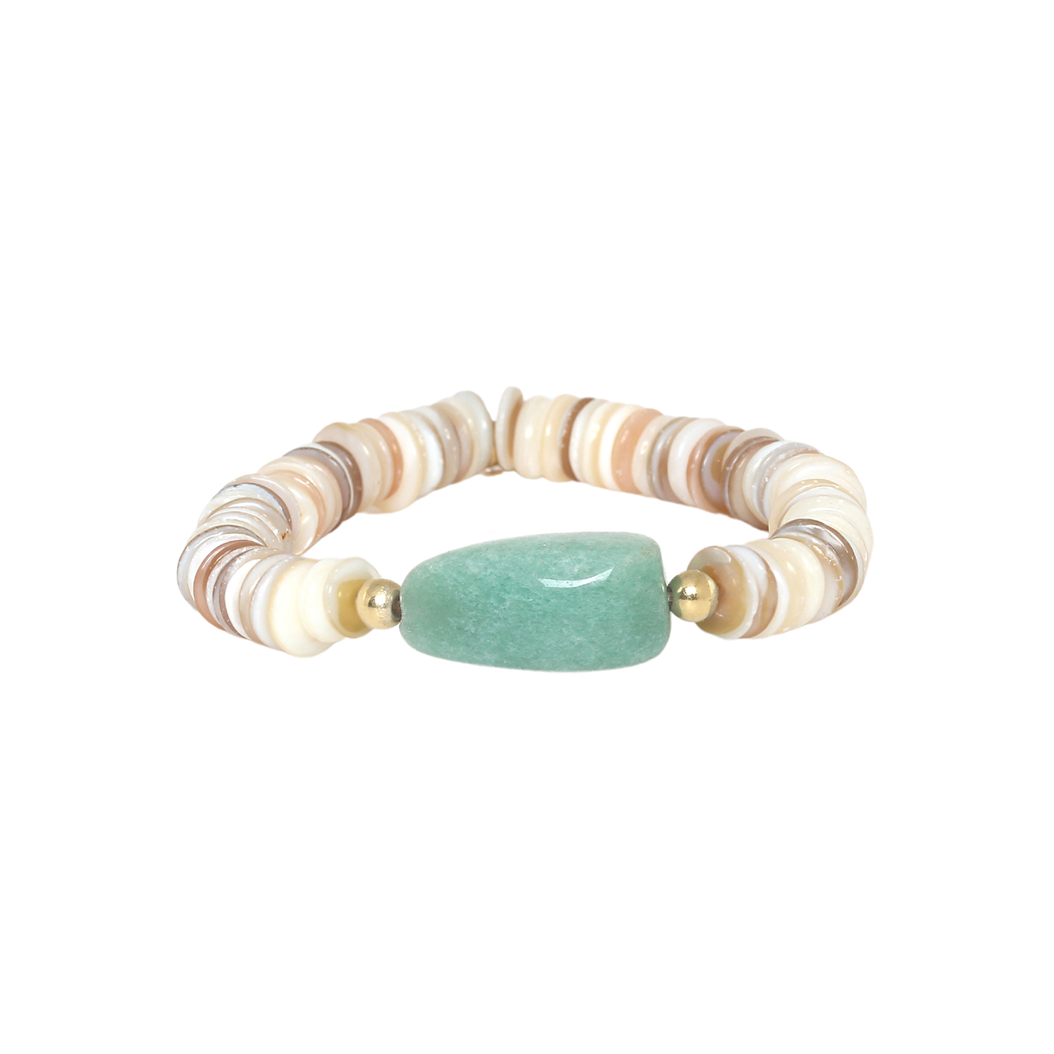 ფრანგული ბრენდი Nature Bijou-ს ხელნაკეთი სამაჯური, კოლექციიდან MINERAMA. სამკაულის ბაზად გამოყენებულია თითბერი, კოლექციაში გამოყენებული ნატურალური მასალები და ქვები: წითელი აგატი, ამაზონიტი, ამეთვისტო, მწვანე ავანტურინი, ლურჯი კალცედონიტი, ციტრინი, ლაპის ლაზურიტი, ვარდისფერი ნიჟარა, ვარდისფერი კვარცი, მთის ბროლი, კვამლისფერი კვარცი, ვეფხვის თვალი