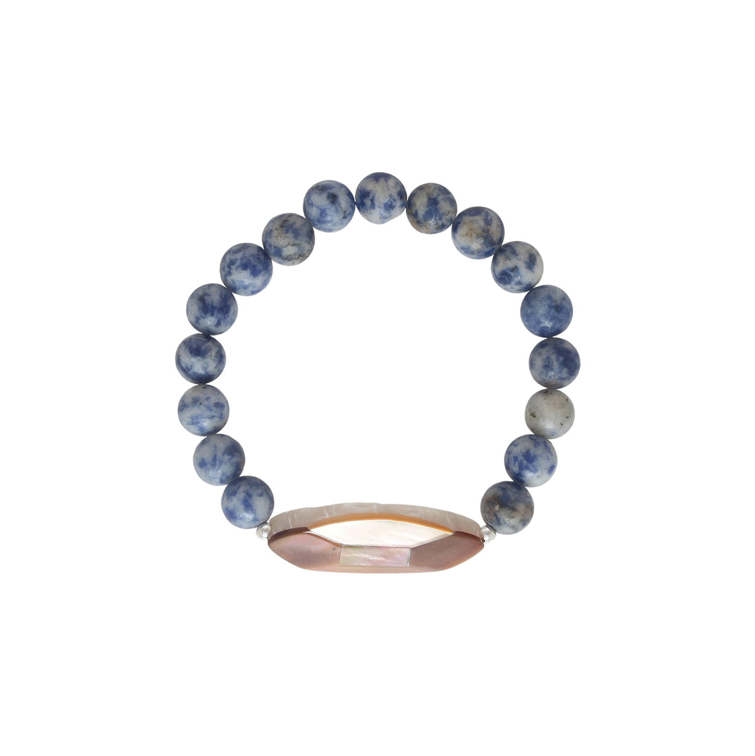 ფრანგული ბრენდი Nature Bijou-ს ხელნაკეთი სამაჯური, კოლექციიდან SKALA. სამკაულის ბაზად გამოყენებულია თითბერი, კოლექციაში გამოყენებული ნატურალური მასალები და ქვები: ყავისფერი სადაფი, ნაცრისფერი აბანოზის ხე, სოდალიტი