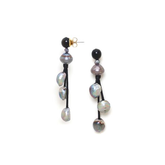 ფრანგული ბრენდი Nature Bijoux-ს ხელნაკეთი საყურე კოლექციიდან BLUE PEARL. სამკაულის ბაზად გამოყენებულია თითბერი. კოლექციაში გამოყენებული ბუნებრივი მასალები და ქვები: სადაფი, რქა, ტყავი, მარგალიტი